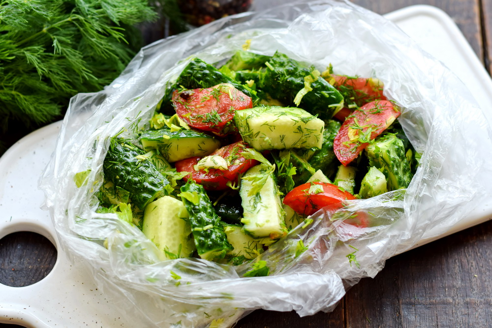 помидоры, огурцы, лук, масло растительное, соль, перец